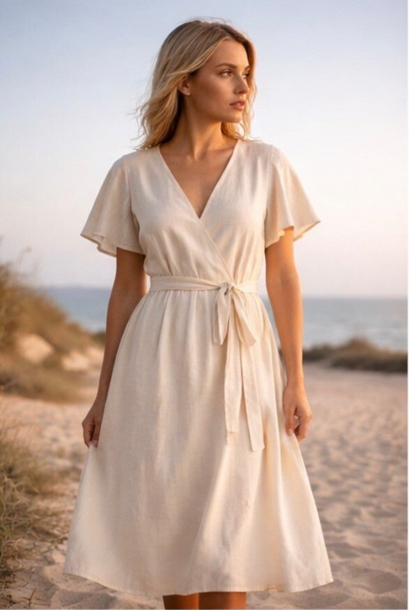 Een elegante, luchtige jurk gemaakt van duurzaam linnen. Perfect voor een stijlvolle en tijdloze uitstraling.